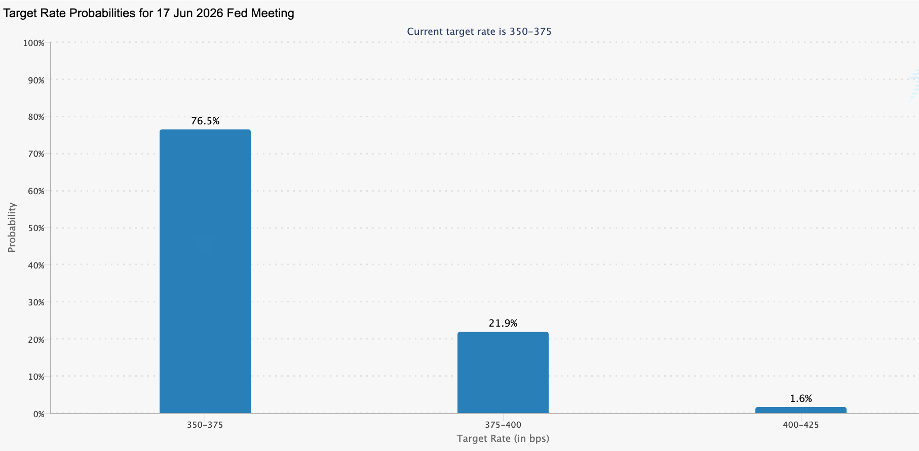 Markets are pricing in a ~25% probability of a Fed rate hike by the June meeting.