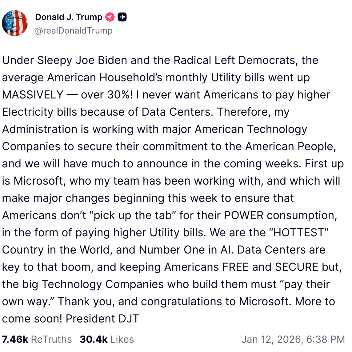 Microsoft pledges to cover data center grid costs – Microsoft Corp says it will pay for power infrastructure tied to its AI buildout to avoid passing higher electricity bills onto consumers (Bloomberg)