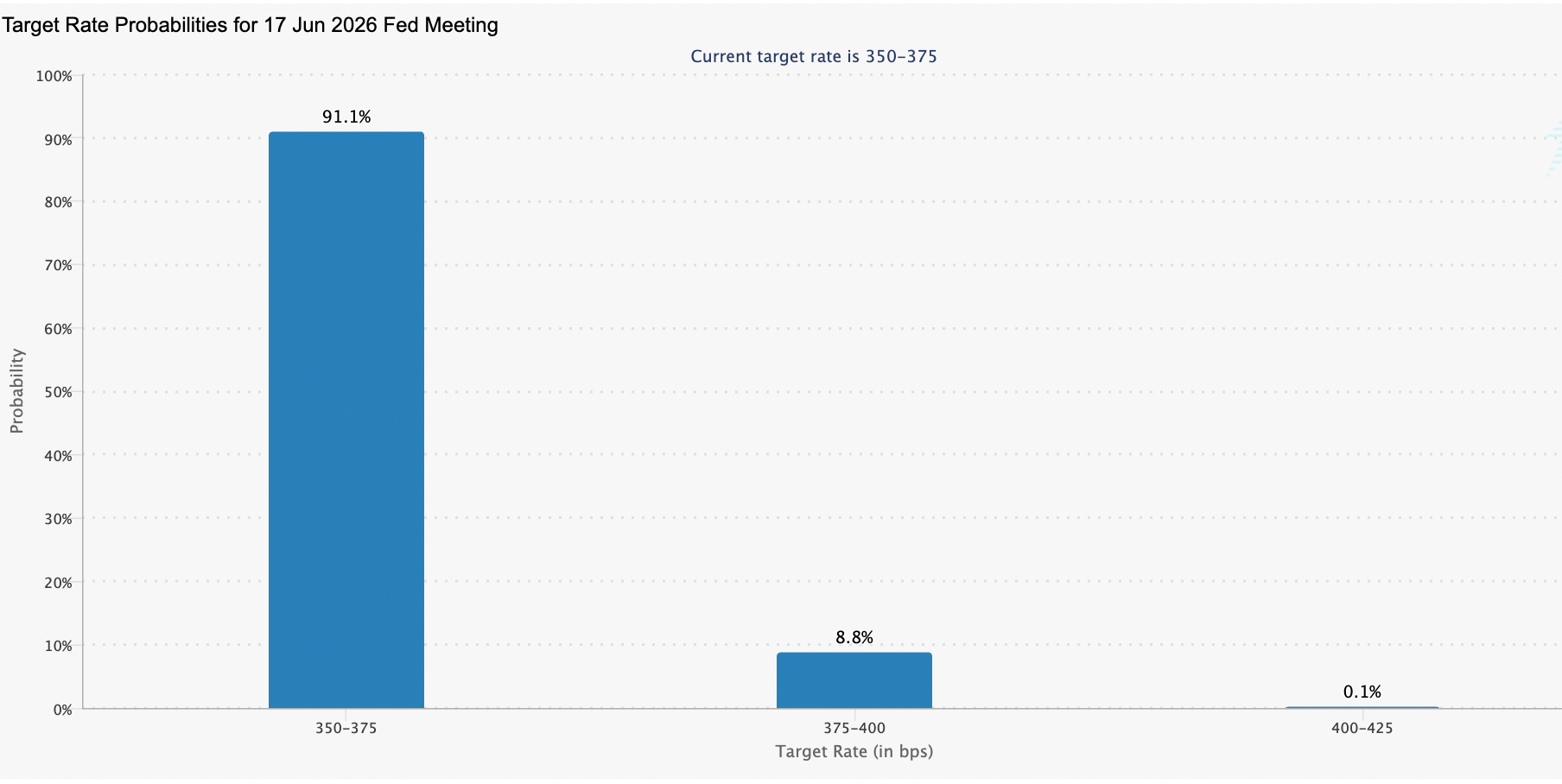 Markets are pricing 91% odds the Fed holds rates through June
